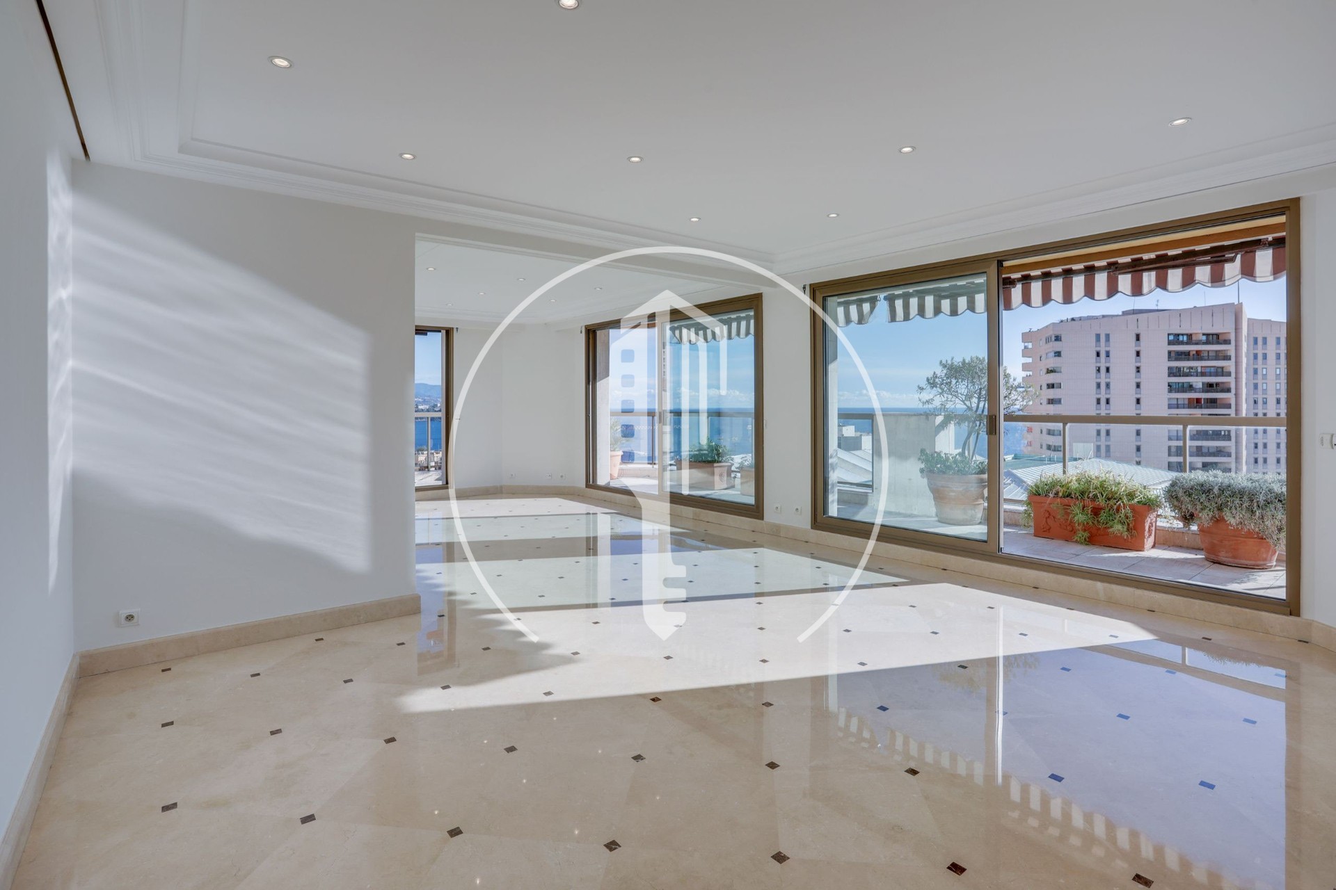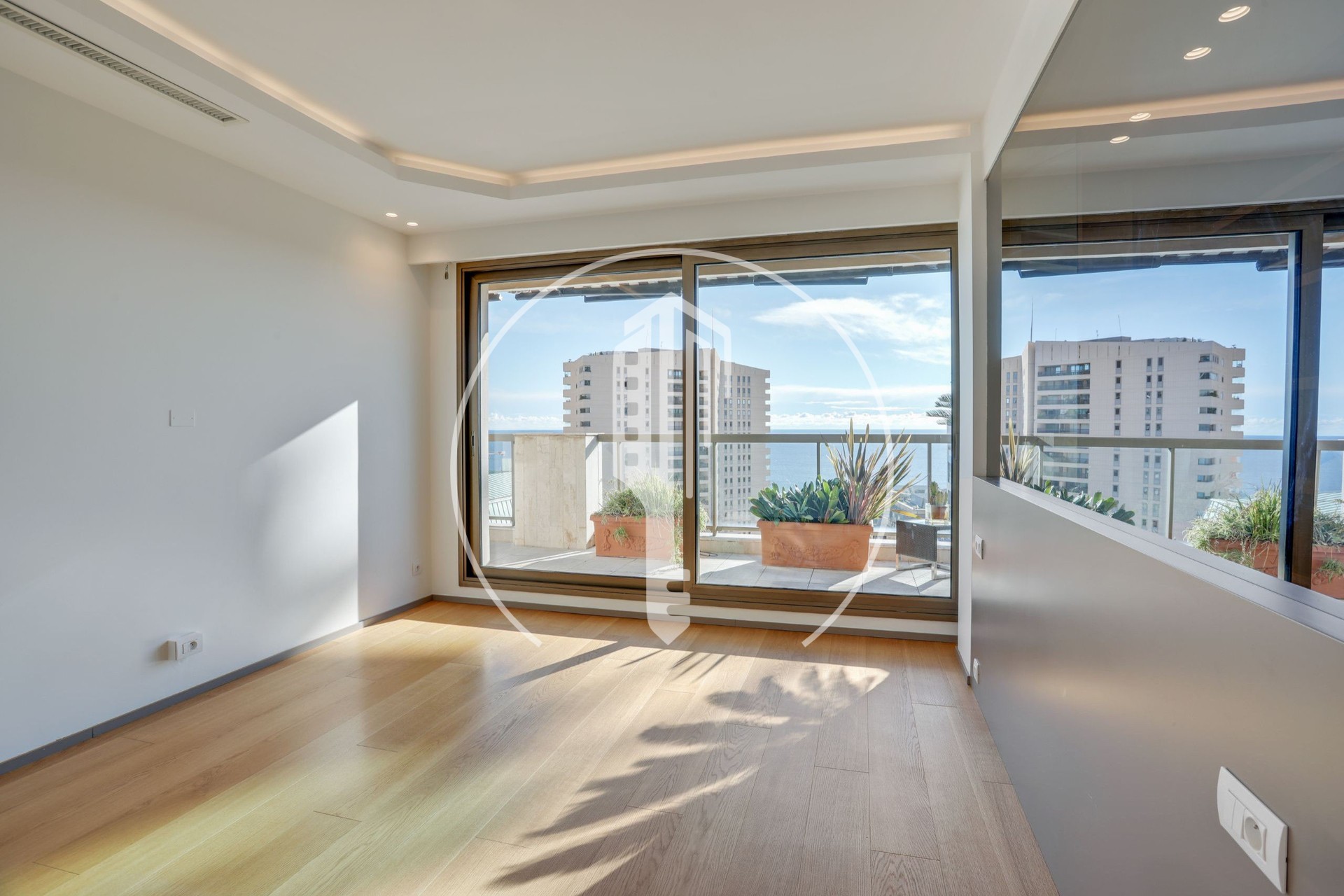 Located in the Carré d'Or district, this charming 5/6-room apartment on a high floor of the residence enjoys a sunny position with a beautiful partial sea view. It features a double living room, a large equipped kitchen, a laundry room, three bedrooms each with its own shower room, a walk-in closet, a bedroom with a bathroom, guest toilets, plenty of storage space, and two large terraces. The apartment comes with a long parking space for 2 cars, two adjacent parking spaces for 2 cars, and two cellars. The apartment is available immediately.