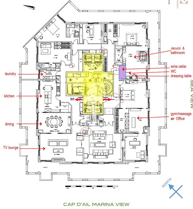 The terrasse wraps around the entire floor, allowing easy access to the outdoors and panoramic sea views from every room. At 750 m2, this property presents an opportunity for a full redesign to personalize the space according to your taste. With 6 parking spaces including in the sale, convenience is guaranteed.