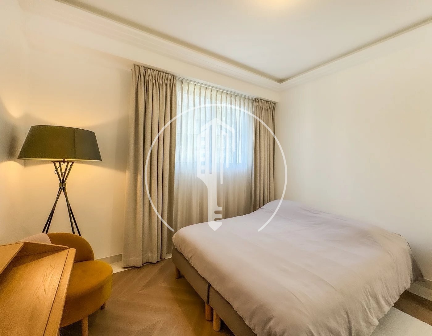 The kitchen, fully equipped and furnished, will seduce you with its functionality and contemporary style. The marble bathroom, with its double washbasin, embodies elegance and comfort. The entire apartment is air-conditioned for optimum comfort in all seasons.