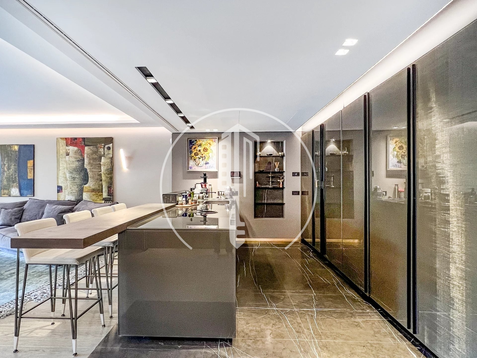 The interior of the apartment has been recently renovated and decorated in neutral tones. The living areas offer generous volumes, and the materials have been carefully selected to provide the very best features.