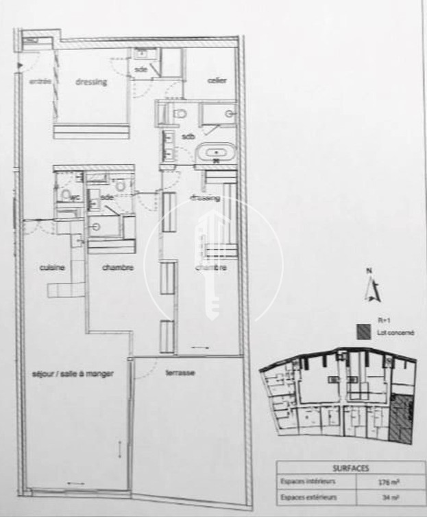 This 3-room apartment comprises an entrance hall leading to a living/dining room with open kitchen, a spacious master bedroom with dressing room and bathroom, a second bedroom with shower room, a storeroom, a guest toilet and dressing room, and a terrace.