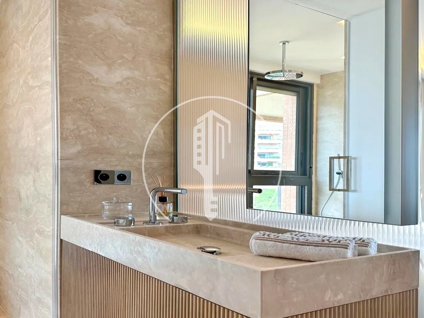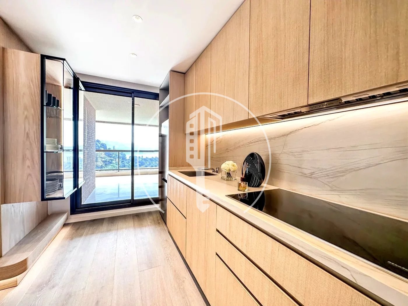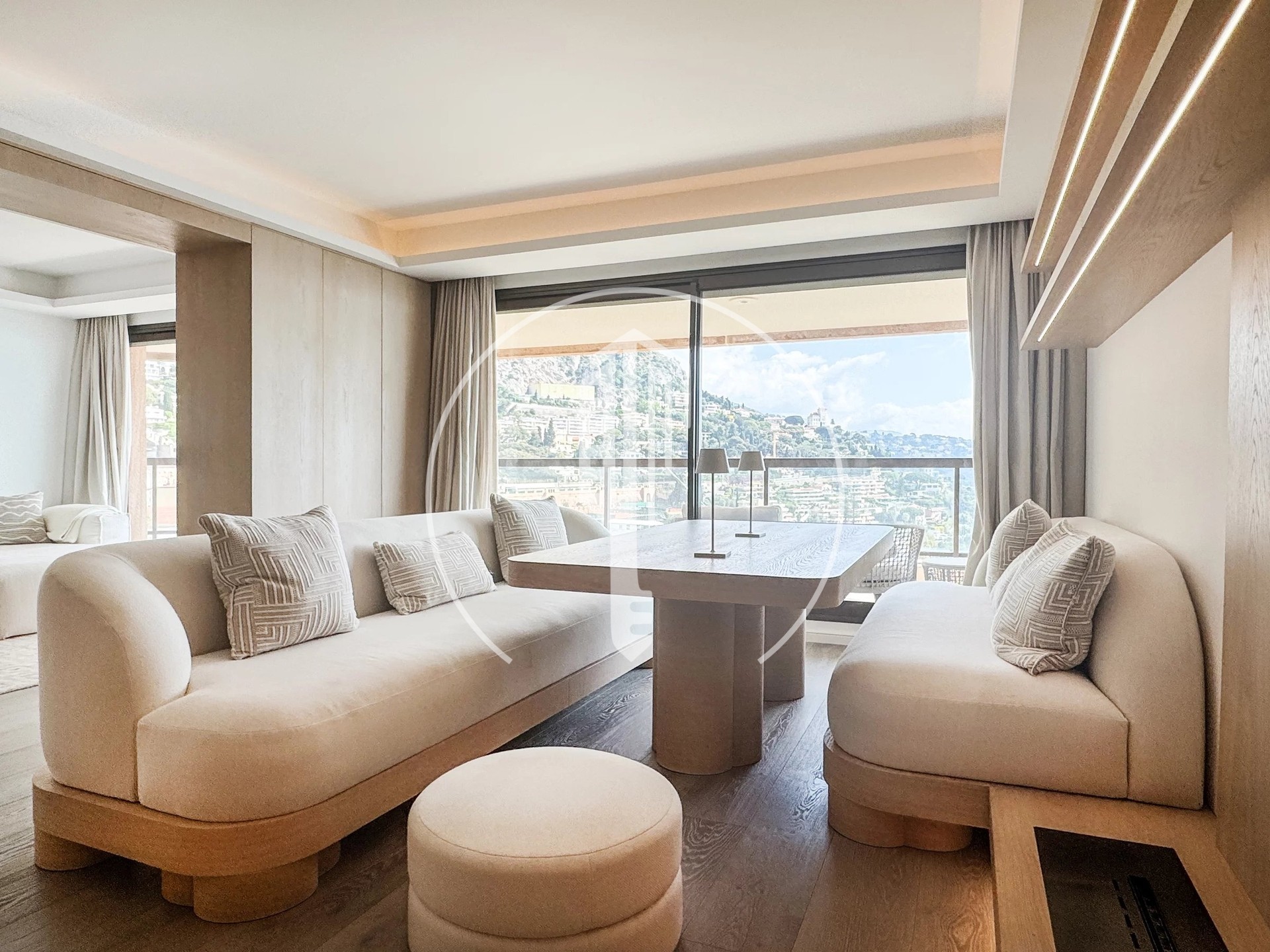 In the prestigious Monte-Carlo Sun residence, featuring a 24/7 concierge, landscaped park, and swimming pool, an exceptionally stylishly renovated 2-bedroom apartment awaits you in a privileged location close to the beach, the Country Club, and the International School of Monaco.