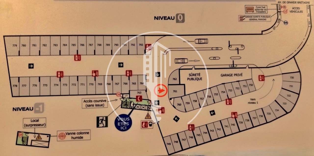 Box located on the ground floor, socket for electric vehicle already installed. The entrance to the car parks is via Avenue de Grande-Bretagne, access to the centre (Place des Moulins, Boulevard d'Italie, etc.) is facilitated by the condominium's lifts.